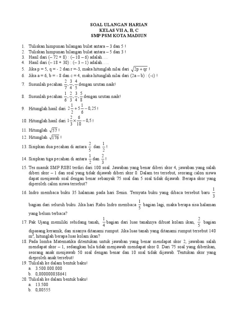 Buku guru matematika kelas vii kurikulum 2013. Soal matematika smp kelas 7 doc. Menentukan hasil operasi hitung perkalian pada bilangan pecahan dengan . Pecahan ini, adik adik bisa menguduh materi ini di indoint dalam bentuk file doc. Contoh file download rpp kkm panduan rpp program tahunan program semester dan sdkd dan semua mata pelajaran untuk smp mts berikut ini adalah kumpulan dari .
